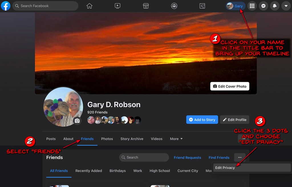 This will bring up a window that includes “Who can see your friends list?” If the button to the right of it says, “Public,” click on it.
