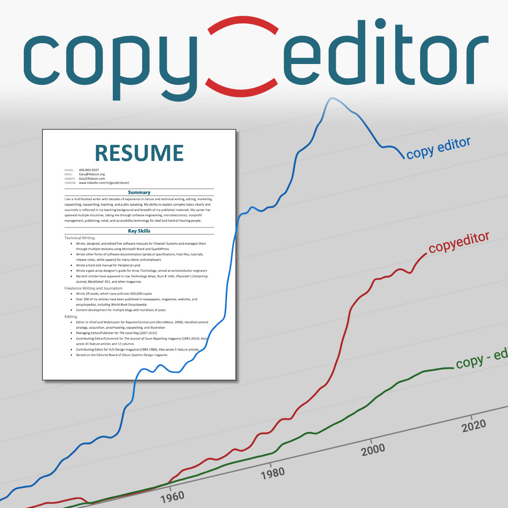 What to do? I’m certainly going to use the single-word spellings for copyedit, copyediting, and copyeditor unless I’m writing for someone that specified AP style. That doesn’t help on the resume, though. Maybe there’s one final authority to draw from: ACES: The Society for Editing, which identifies itself as the nation’s leading organization of editing professionals.