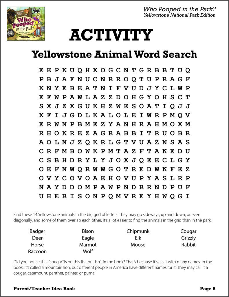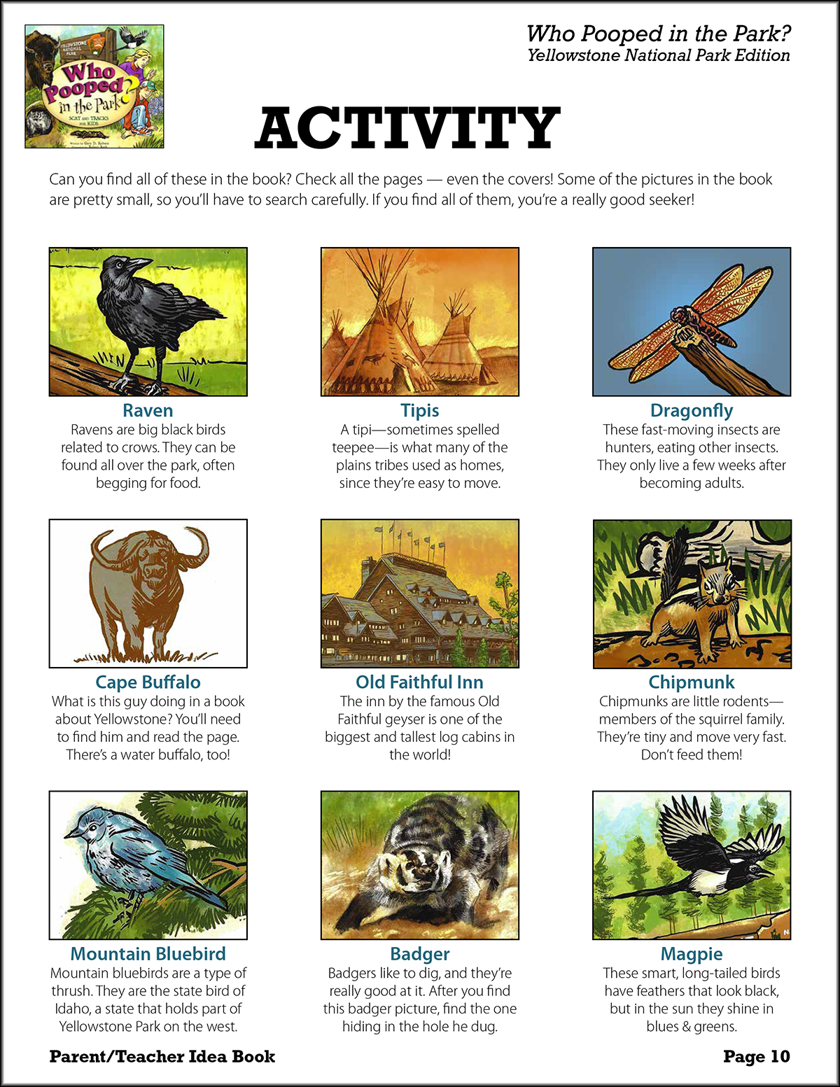Over the years, my Who Pooped in the Park books have found their way into many classrooms, and quite a few parents have probably gotten tired of reading them out loud. I’ve just released a free idea book for using the Yellowstone edition of Who Pooped as a teaching tool, along with several pages of activities.