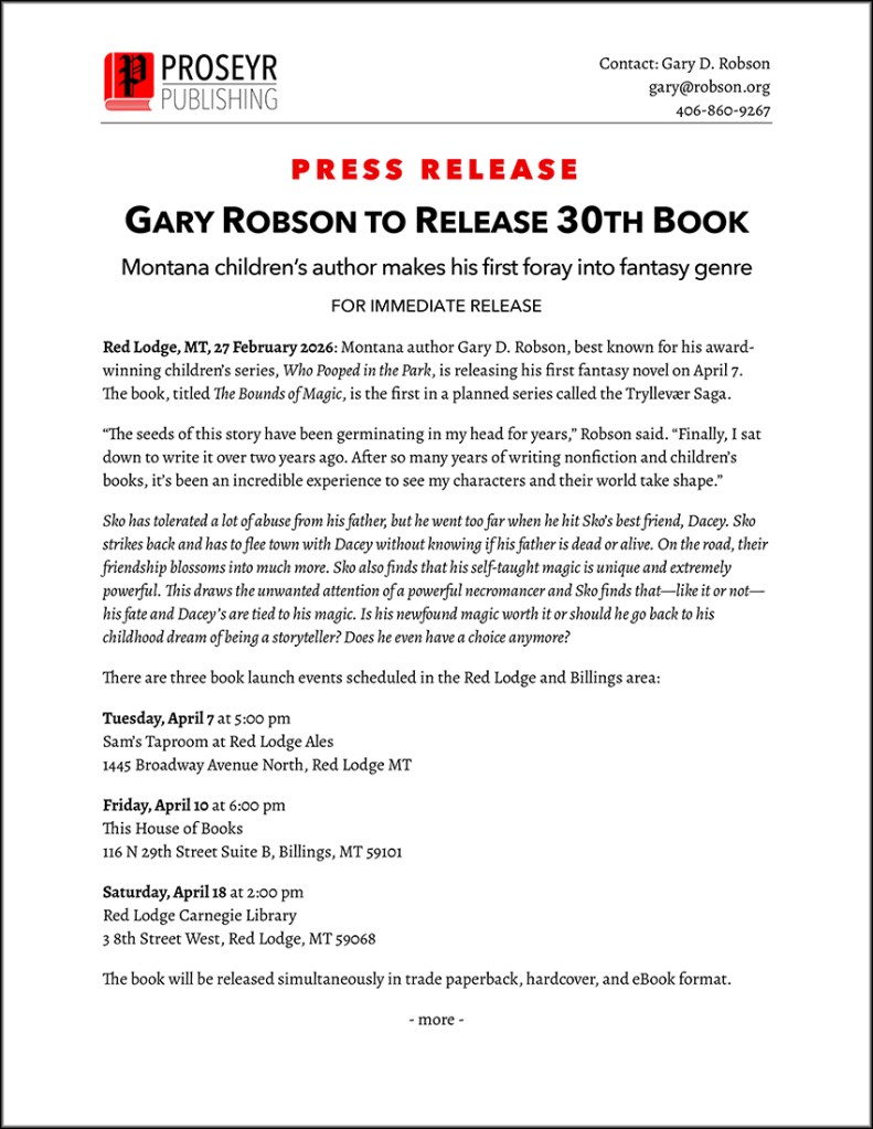 My new fantasy novel, The Bounds of Magic, will be released April 7. We have three launch events scheduled around Red Lodge and Billings. I’m still in the process of setting up the book tour for this spring, so keep an eye out for events in your area.