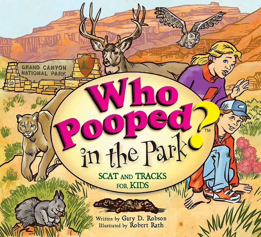 In their “close encounters of the poopy kind,” the family learns about a variety of animals, and readers will become familiar with their tracks and the droppings they leave behind (scats). This Grand Canyon edition features: