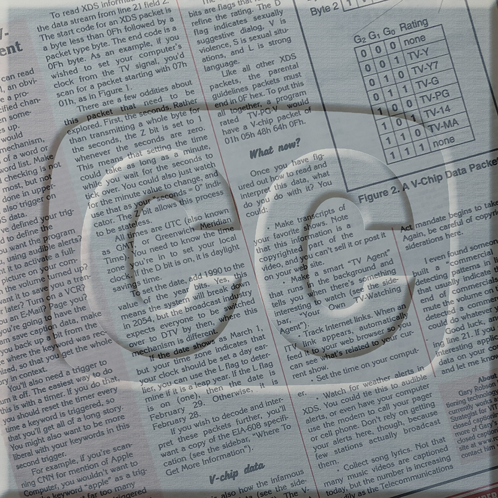 Closed captioning has been a big part of my life. I’ve acted as a developer, writer, advocate, volunteer, and consultant in the field. My website will never be a definitive compilation of my captioning work (that’s what the books are for), but this page will tie together some of the captioning resources I’ve had a hand in.