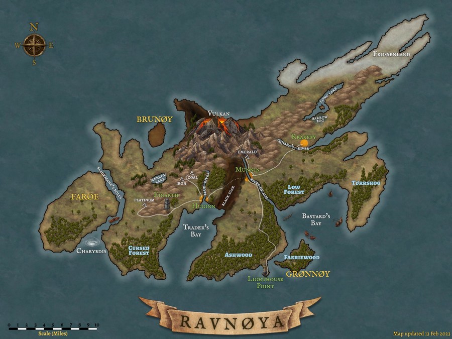 - Feb 13: Gods of Ravnøya page added, describing the pantheon. Map below updated.