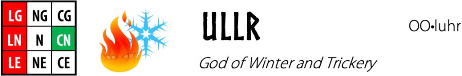 Ullr prides himself on being unpredictable, sometimes to the point of capriciousness. He enjoys that in his disciples, and tends to attract Chaotically-aligned people. He loves a good laugh and has been known to pull pranks that backfired on him. He’s never intentionally cruel, but his sense of schadenfreude means that he can still get a chuckle out of a trick that went too far and hurt someone.