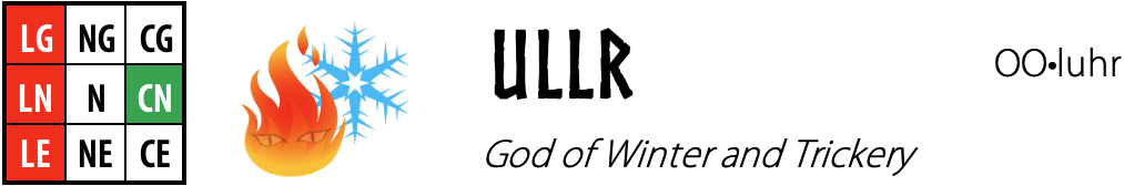 Ullr prides himself on being unpredictable, sometimes to the point of capriciousness. He enjoys that in his disciples, and tends to attract Chaotically-aligned people. He loves a good laugh and has been known to pull pranks that backfired on him. He’s never intentionally cruel, but his sense of schadenfreude means that he can still get a chuckle out of a trick that went too far and hurt someone.