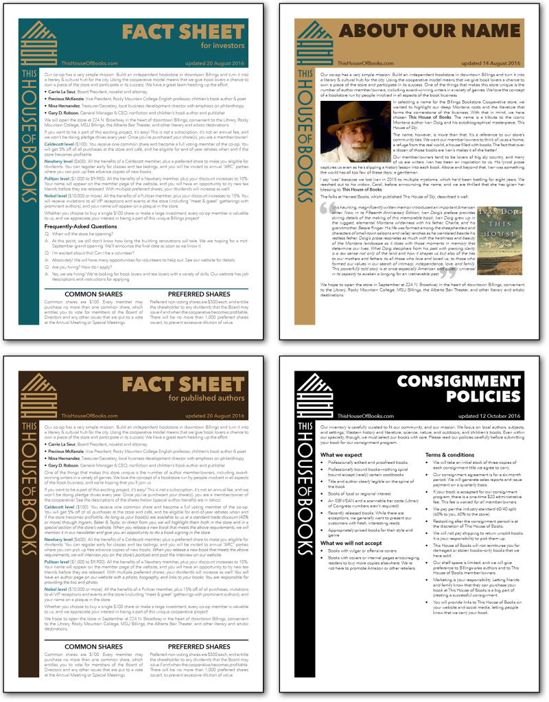 When I designed these co-op fact sheets, I made sure they had obvious differences. They all follow the branding, but they’re aimed at different audiences so the color differences make it much less likely that the wrong document will be sent out.